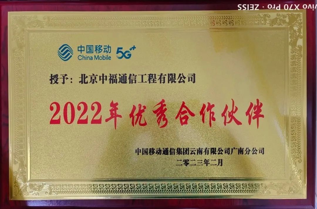 2022年12月,文山項目部在2022年12月獲得了中國移動通信集團云南有限公司西疇分公司及中國移動通信集團云南有限公司廣南分公司頒發的“2022年度優秀合作伙伴”獎牌。