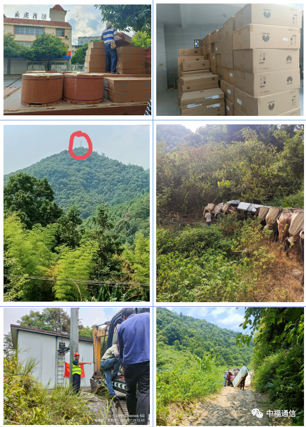 二是精準籌備,高效配送。新羅、漳平、永定屬于山區地形,2G時基站多數建在偏遠山頭,上山多是羊腸小道、荊棘密布,溝坎縱橫、行動艱辛,運送物資器材困難重重。為提高效率和進度,安排在各區縣設立工程物資暫存點,將物資按區縣市級精細化分配、動態調度,協同區縣市、施工隊和物流資源,快速完成末端派送。出現道路堵塞的,派出挖掘機開路,提前將大件物資送達基站,連日來,已分發轉運RRU及天線60多車次,配送輔材20余車次;不通車的,或雇請工人搬運,或由馬隊運輸。他們戰勝艱難困苦、披荊斬棘攀登,涌現出大批愛崗敬業、勇于擔當的好人好事,為保質保量按時完成工程建設任務打下了堅實基礎。